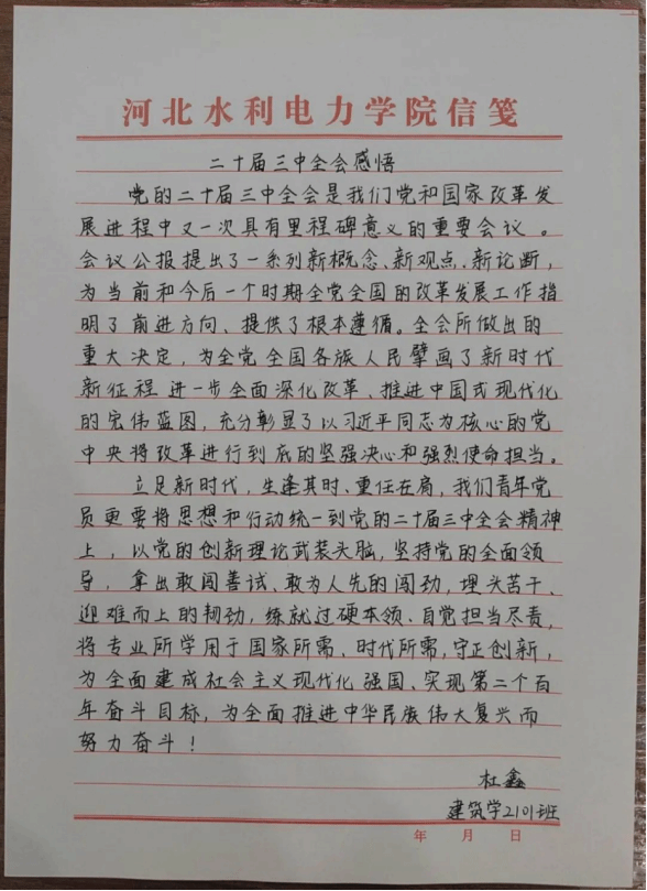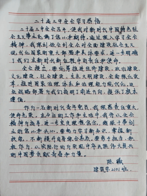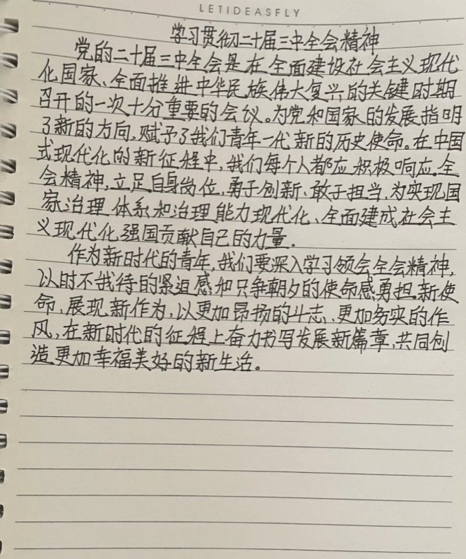 最近,我们党召开了了二十届三中全会的会议,这次会议让我深刻认识到了中国的发展和进步,也让我更加坚定了自己的信仰和追求。