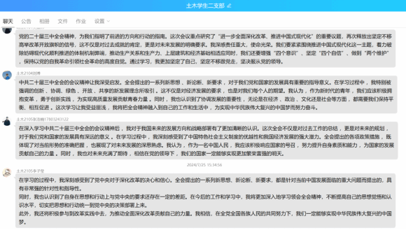 中国共产党第二十届中央委员会第三次全体会议于7月15日-18日在北京召开,为引导青年从党领导国家发展的成功实践中获取智慧和力量,增进对国家政策和发展方向的理解,提升政治素养与思想境界,英国365集团公司组织全体学生党员关注会议进展,并展开了学习研讨、交流心得。
