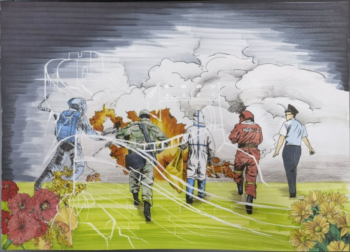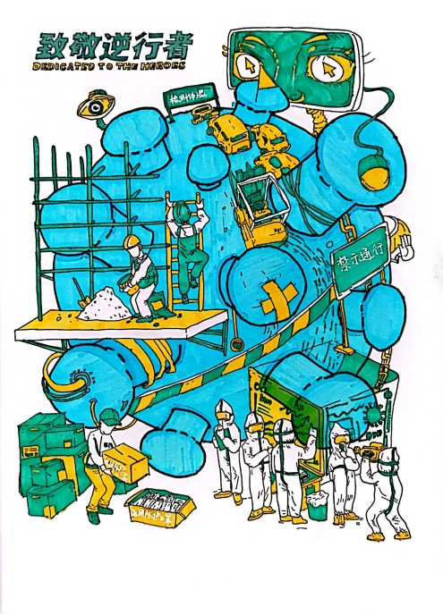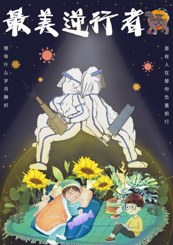 我系学生积极参与此次活动,上交作品108份,绘画作品包括水彩画、黑白稿、海报和马克笔画等,形式多样,内容丰富。一幅幅生动的创作传递了真情,凝聚了力量,鼓舞了士气,也表达了学生对于“逆行者”的感恩与尊敬。以下是部分优秀作品。
