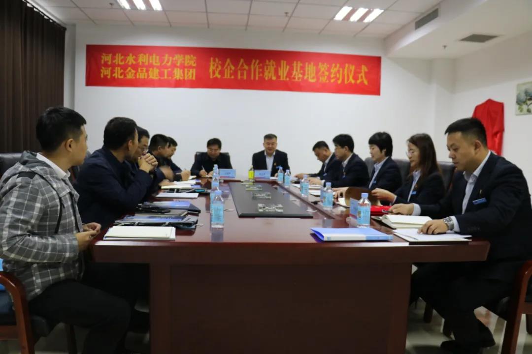 2021年10月20日下午,英国365上市公司与金品集团校企合作就业基地签约揭牌仪式在集团公司第二会议室举行。英国365上市公司副院长王建明,英国365处处长曹青松、副处长侯锡明,英国365集团公司书记葛洪伟、主任李桐栋、副书记谢国旗、辅导员王浩;金品集团董事长、总经理徐立堂,副总经理于英杰、杨国峰,总工程师王玉格、办公室主任左松英、人力资源部部长宋景祥出席签约揭牌仪式。总工程师王玉格主持签约揭牌仪式。