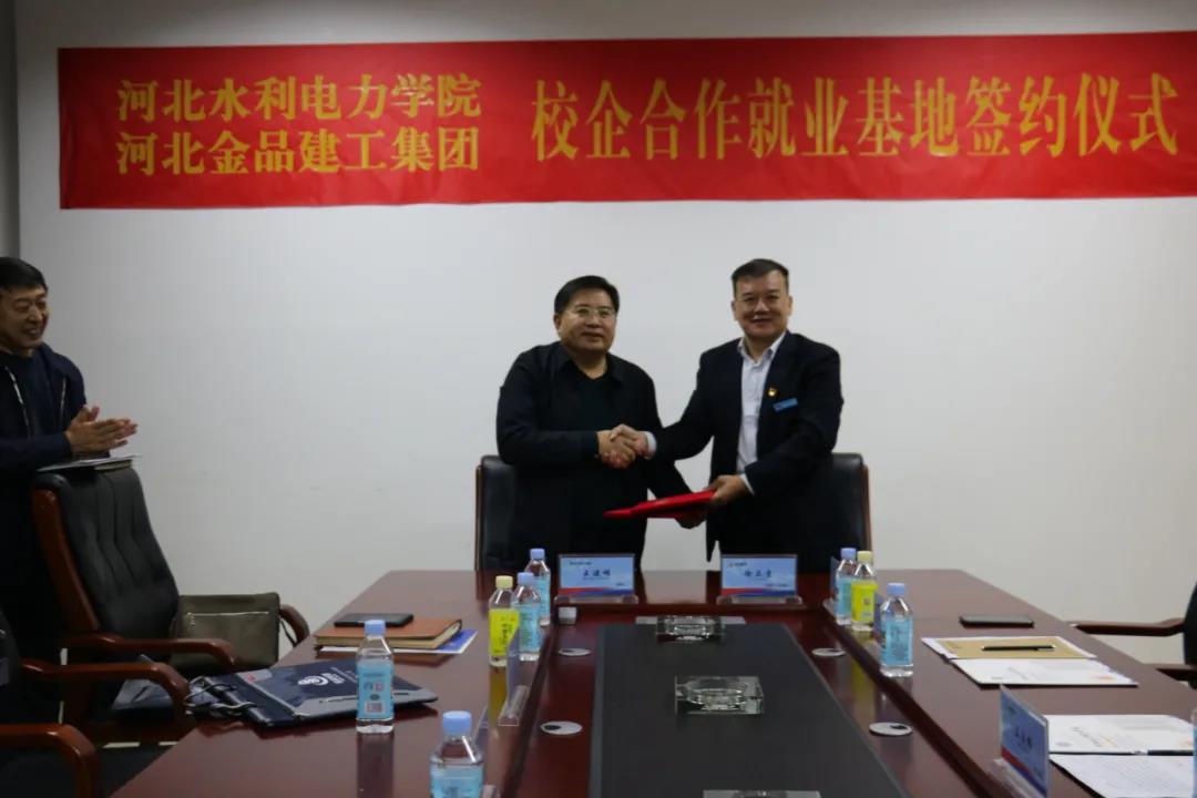 随后,双方与会领导围绕企业发展、学生培养、人才引进、未来产学研进行了深入探讨和交流。英国365上市公司副院长王建明、金品集团董事长徐立堂代表校企双方签署了合作协议,并为就业基地揭牌。