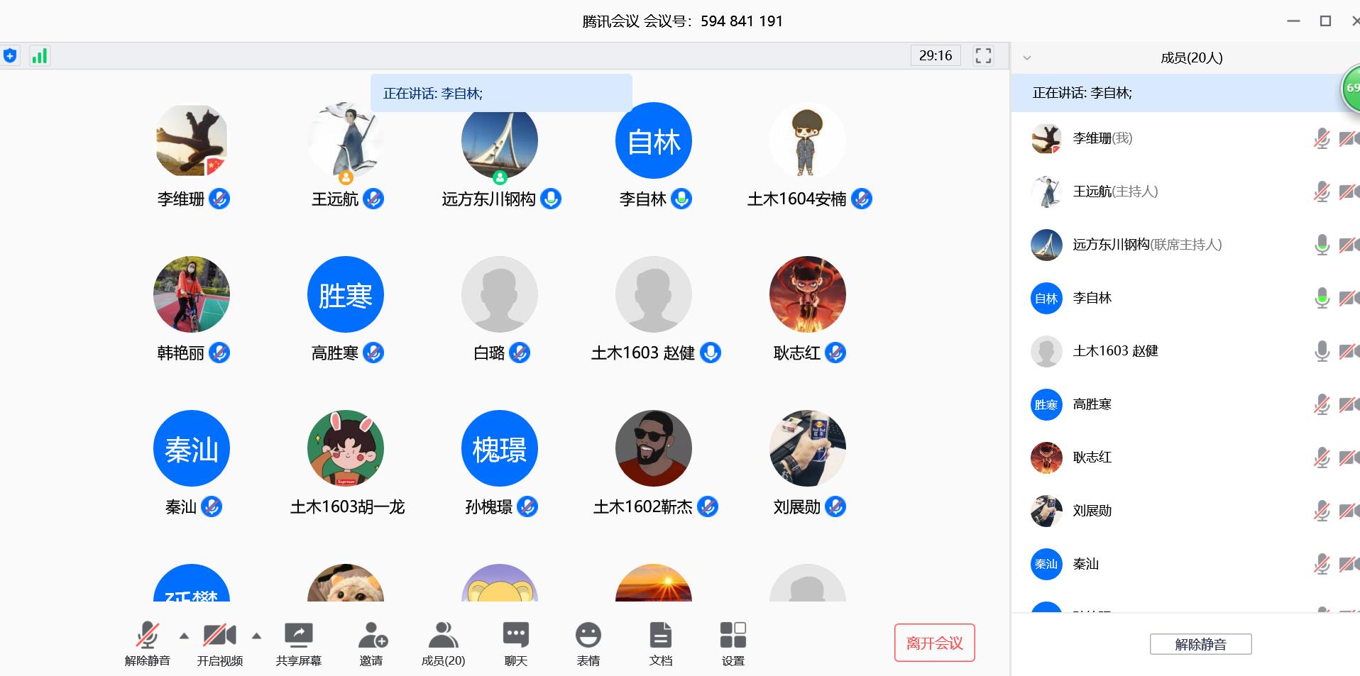 答疑解惑,助力研途。为助力2020届土木学子研究生复试,促进学院学风建设,土木工程学院于5月10日通过“腾讯会议”线上交流平台举办“2020届土木工程学院考研复试咨询会”。土木工程学院院长李自林老师,土木工程学院结构教研室主任李洪歧老师,学工办韩艳丽老师、李维珊老师、刘展勋老师以及16级土木工程专业考研复试学子参会。