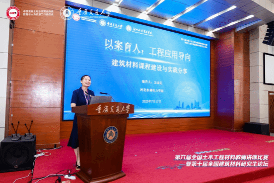 本次活动由中国混凝土与水泥制品协会教育与人力资源工作委员会主办,重庆交通大学承办,教育部高等学校土木工程专业教学指导分委员会指导,吸引了全国土木工程材料领域300余名师生参与,是业内交流教学经验、碰撞学术思想的重要平台。本次活动中,作为河北省一流本科课程《建筑材料》负责人,吴金花副教授在论坛上作题为“以案育人,应用导向的建筑材料课程建设与实践”的特邀报告。报告聚焦应用型人才培养目标,紧密结合课程特点与学生学情,系统分享了我校在《建筑材料》课程建设与实践中的创新举措与显著成效。吴金花老师重点阐述了基于真实工程案例和工程从业者角色的教学设计理念与方法,其先进经验和突出成果获得了与会专家学者的高度评价与认可。